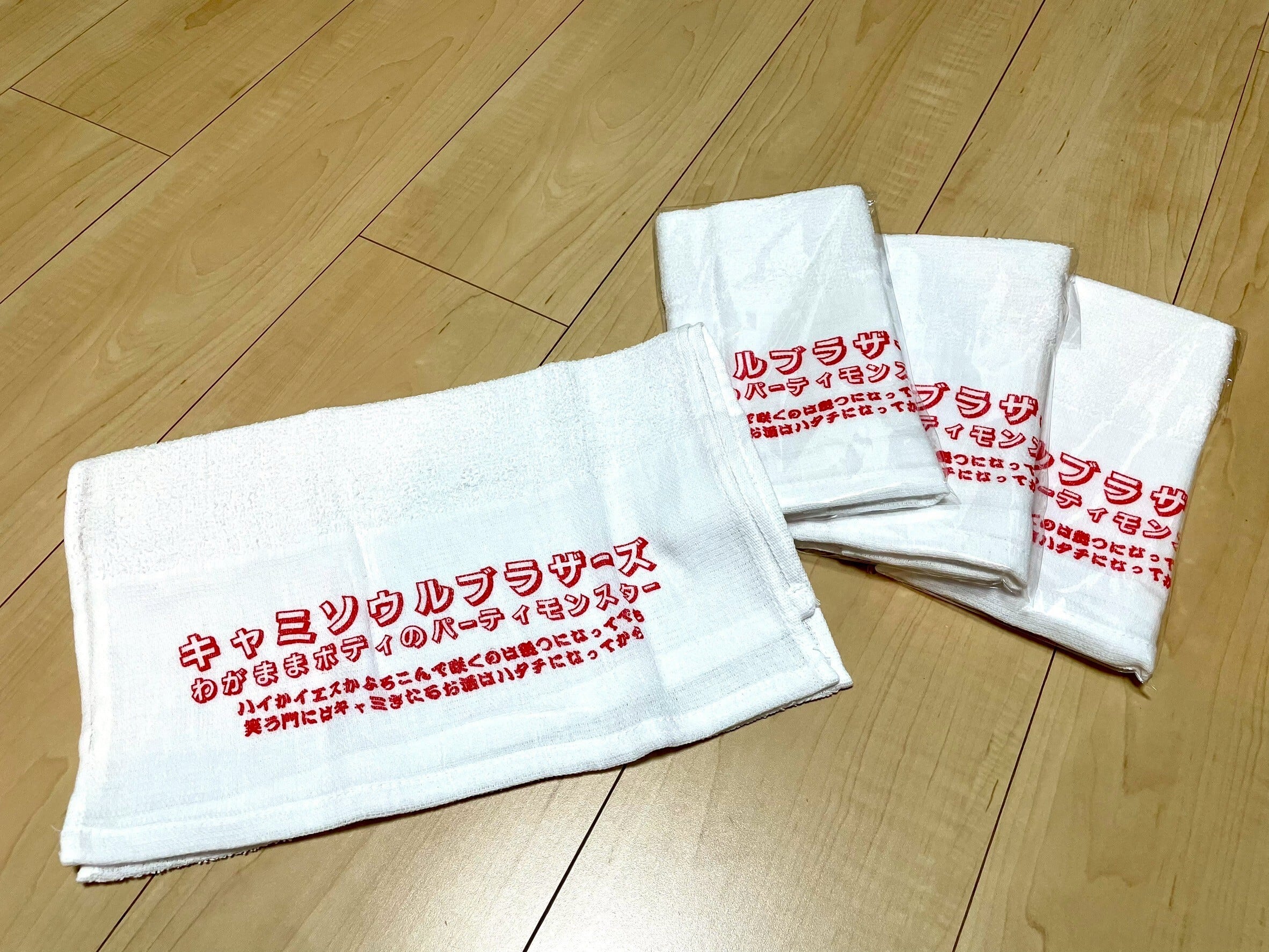 キャミソウルブラザーズの温泉タオルです!今回はBASE限定の3枚セットでのご紹介です!